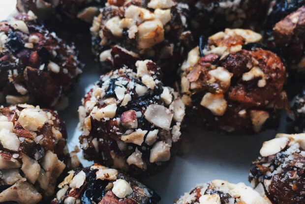 4. Необходимо взять орех, обвалять его в фруктовой массе и обсыпать молотым фундуком.