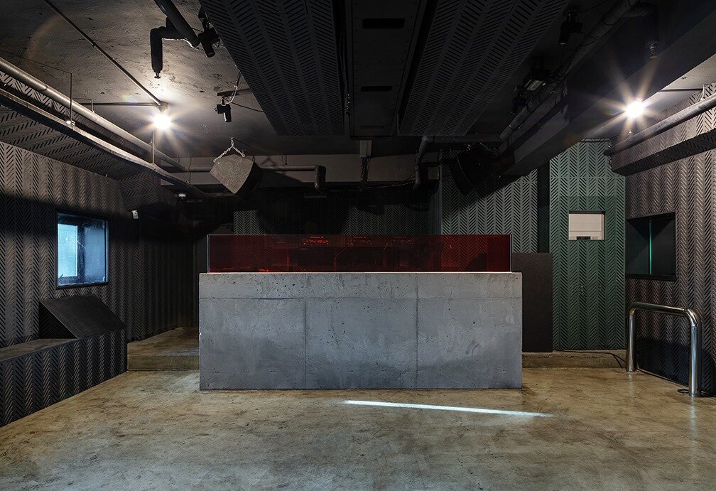Посмотрите внимательно на эту инсталляцию — типичный случай, например, для Питера: промышленное помещение с коммуникациями на потолке, узкое, длинное, с низким потолком, да еще с колоннами. Сразу же бросается в глаза, что колонки стоят не на тех местах, где мы привыкли видеть их в российских клубах. Знаете почему? Тут звук ставил не знакомый владельца — диджей, звукорежиссёр, умничка — а интегратор. Это нерешаемая задача для человека, настраивающего колонки на слух по статье из Интернета. Как всё сделано: сабвуферы у боковой стены со смещением к диджейке. Тип акустического оформления сабов — короткий рупор с предрупорной камерой, абсолютно неприменимый в этих условиях, но они работают как БП4 за счёт разворота лицом к стене, формирующего порт между стеной и сабвуферами. Хозяйке на заметку: таким образом в безвыходной ситуации можно превратить абсолютно любой сабвуфер в БП4. Распределённая система из нескольких небольших ас каждые три метра, благодаря чему возможно не дав