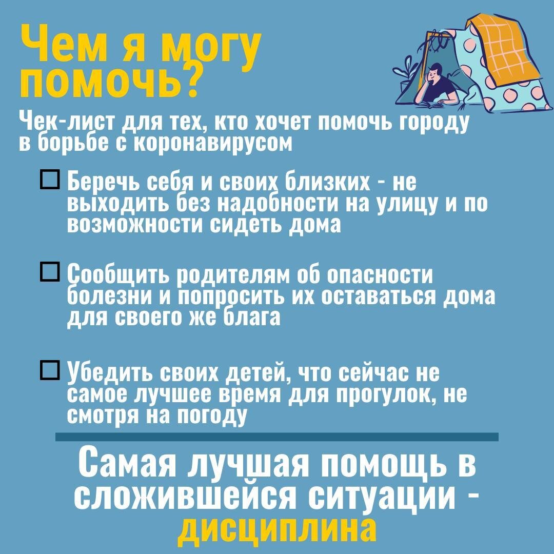 Градоначальник составил список того, как можно помочь Екатеринбургу в борьбе с коронавирусом. Первым и главным пунктом, по словам мэра является забота: о себе, близких и окружающих. Граждан все так же просят не выходить на улицу без резкой надобности, посвятить это время советуют чтению книг, саморазвитию и общению со своими детьми.