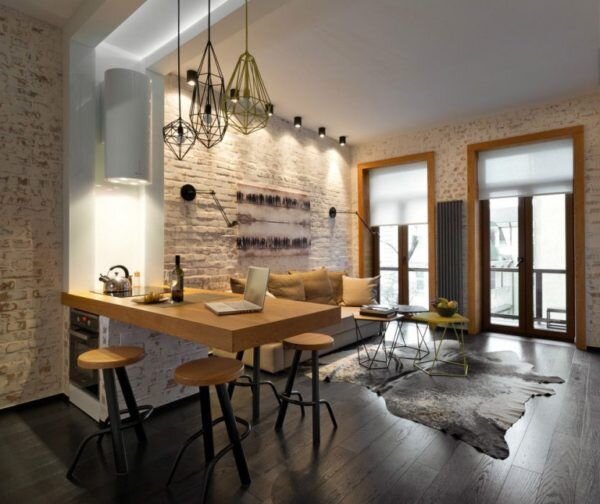 Здесь отсутствуют любые ограничения. Создать интерьер легко при наличии пространства с большими окнами, высокими потолками, отсутствии перегородок. Дополнить его поможет специфическая мебель, заказывать которую лучше у дизайнеров. В качестве контраста может использоваться современная бытовая техника. После этого стоит переходить выбору системы освещения. Тут у многих и начинают возникать затруднения. Ведь найти вариант с нужным стилем оказывается не так и просто.