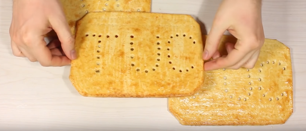 Добрый день! Сегодня мы расскажем и покажем рецепт крекера "TUC". Он получился не менее вкусный чем в магазине, а по размерам он больше в 100 раз! В конце статьи мы расскажем ещё один БОНУСНЫЙ рецепт из сыра! Поэтому читаем до конца! И так начнём! "Огромные крекеры TUC" Обычные крекеры, которые мы покупаем в магазине, очень быстро съедаются и от них ничего не остается, поэтому мы покажем как приготовить огромные крекеры, которые будут тоже очень вкусные и в тоже время большие! Ингредиенты: Готовка: Ложим 100 грамм масла в миску и засыпаем стакан муки и хорошо перемешиваем, чтоб получить густую массу. Натираем 100 грамм сыра и добавляем в миску к нашему тесту и опять хорошо перемешиваем. Масса становиться очень густой, поэтому легче её мять руками. Затем добавляем в тесто яйцо и немного смешиваем и добавляем пол чайной ложки соли и мешаем. После яйца, тесто стало жидковатым, поэтому добавляем ещё примерно один стакан муки и окончательно замешиваем тесто. Мнём его ещё несколько ми