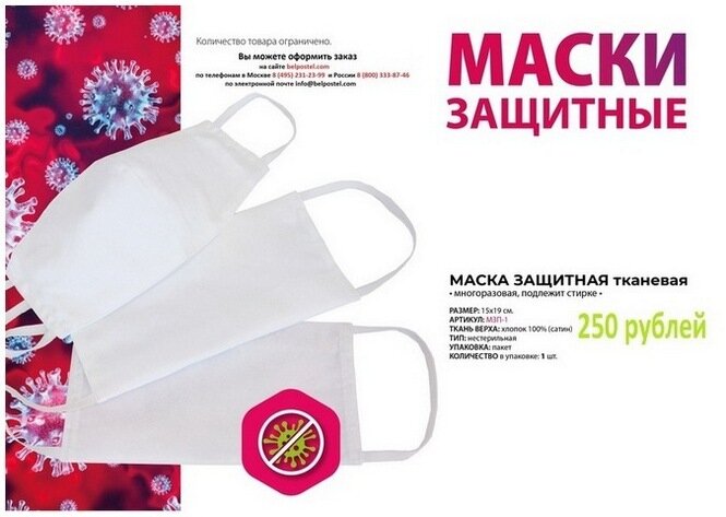 Рекомендации: носить не более 2 часов. После применения подвергнуть обработке: ручная или машинная стирка (до 95 градусов) с последующим прокаливанием утюгом, либо замачивание в специальном антисептическом растворе. Производитель: Россия