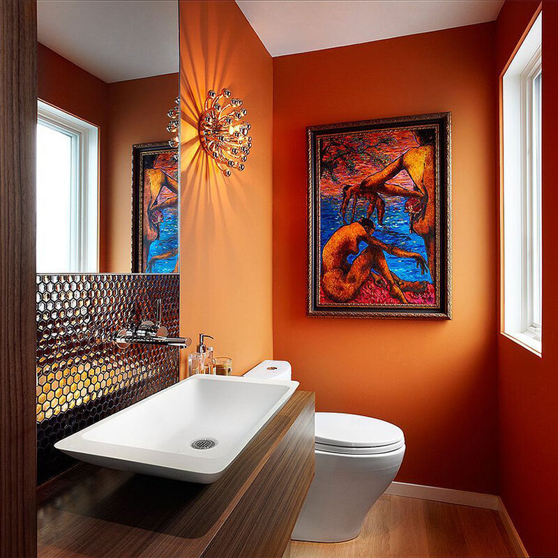 Мне нравится, когда привычные элементы интерьера или декор находится в нестандартных местах. Например, книжная полка на кухне, цветы в прихожей, картина в ванной комнате. Последнему я хочу посвятить эту публикацию. Надо понимать, что ванная комната — не самое безопасное место для сохранности подобного декора. Позаботьтесь о хорошей вентиляции, подумайте над местом размещения... Постарайтесь продлить сохранность предметов. Представляю несколько удачных интерьеров ванных комнат, где есть место для картин, постеров и фотографий: Это решение не для каждого, но в конце концов на такие интерьеры просто приятно смотреть!