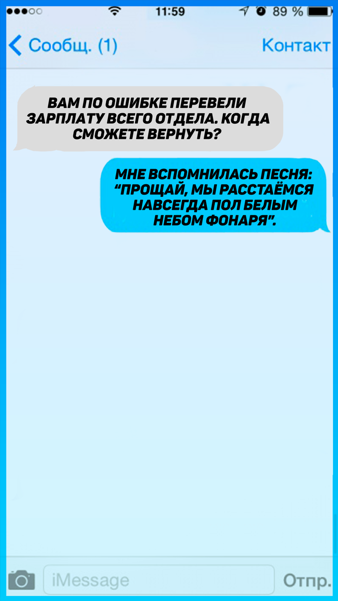 Всех приветствую, вы на канале "Весёлый Трактор". И сегодня я нашёл для вас переписки, смс с очень смешными и неожиданными ответами. Про такие ответы будет уместен фразеологизм "хоть стой, хоть падай". Я уверен, что вас развеселят эти сообщения, потому что это моя главная цель. Ещё хочется сказать, что у авторов переписок очень хорошее чувство юмора. Действительно, хорошее чувство юмора "он же шутит", - с надеждой подумала главный бухгалтер, которая отправляла ему сообщение. Вот, что такое бессмысленный диалог А я думал, что он родился не 17, а 18 лет назад, но, оказывается, нет. От чего интересно устала? На самом деле, таких шуток про руку слышал очень много, но эта прямо лучшая. Что-то мне подсказывает, что они не успели. Но её подруга - молодец, перестраховалась. Как эта мысль залезла в её голову? Но ответ, конечно, стоит прочитать )) Хороший ход Интересно, что она ответила, потому что мне кажется, что она всё-таки записалась на эти курсы. Тревога До меня дошла информация, ч