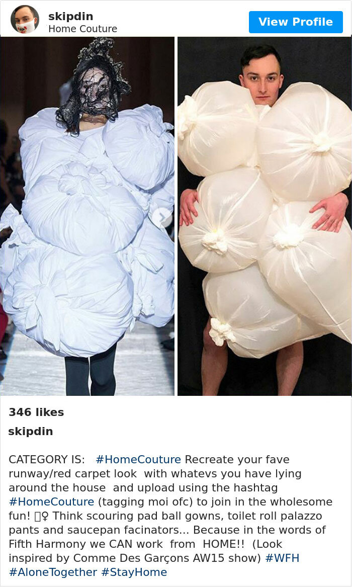 Коронавирус подвергает риску наш гардероб. По всему миру наблюдались многочисленные случаи появления людей в одежде с пятнами пота, мятых пижамах и даже в носках и трусах подаренных (после такого подарка уже бывшей девушкой) на 23 февраля. И поскольку нам становится все более комфортно с карантинным образом жизни, люди, вероятно, совершают гораздо более серьезные преступления, связанные с модой. Но скука порождает креативность, и мы наблюдаем подъем новой волны признанных поклонников моды. Все, что люди могут достать дома, будь то домашние или неопознанные предметы, превращается в карантинную моду. Вы услышали меня правильно. Карантинная мода - это новейшее увлечение, позволяющее держать скуку в страхе, и, честно говоря, если это преступление, мы бы хотели быть преступниками! Давайте черпаем вдохновение в моде весна-лето из списка самых веселых на сегодняшний день моделей.