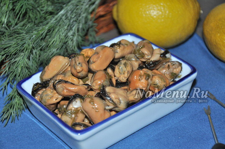 Ингредиенты: Для маринада: ✔️Разморозьте замороженные мидии. При необходимости очистите их внутри от имеющихся загрязнений, промойте 💦Выложите их в кастрюльку, залейте холодной водой (вода должна полностью покрыть мидии) и варите после закипания 3 - 5 минут (кастрюлю не накрывать, пену снимать). Откиньте их на дуршлаг и остудите 🍂В отдельной кастрюльке смешайте воду, соль, сахар, уксус, растительное масло и соевый соус, положите лавровый лист и горошины перца 🔥Поставьте маринад на плиту и доведите до кипения, высыпьте мидии и проварите с момента закипания минуту 🍋В кастрюлю добавьте измельченный укроп, нарезанный лимон, перемешайте. Кастрюлю накройте крышкой и оставьте остывать при комнатной температуре ❄️После того, как мидии полностью остынут, поставьте их в холодильник на 8 - 10 часов https://namenu.ru/11701/Kak_zamarinovatq_midii_v_masle/