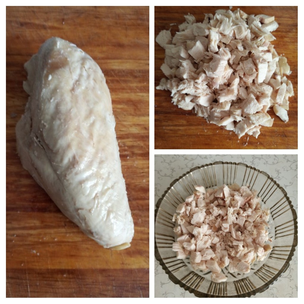 Сытный и вкусный салат с курицей, морковью и сыром. Ингредиенты : - Куриное филе - 200 гр. - Сыр - 50 гр. - Яйца - 2-3 шт. - Морковь - 150 -200 гр. - Чеснок - 1-2 зубчика. - Майонез. Приготовление : Куриное филе отварить в подсоленной воде до готовности, остудить и мелко порезать. Выложить в салатницу. Яйца отварить, почистить, мелко порезать и добавить в салатницу к куриному филе. Морковь натереть на крупной тёрке и добавить в салатницу. Добавляем чеснок, пропущенный через пресс, и сыр, натёртый на крупной тёрке. Заправляем майонезом, солим и хорошо перемешиваем. Приятного аппетита!