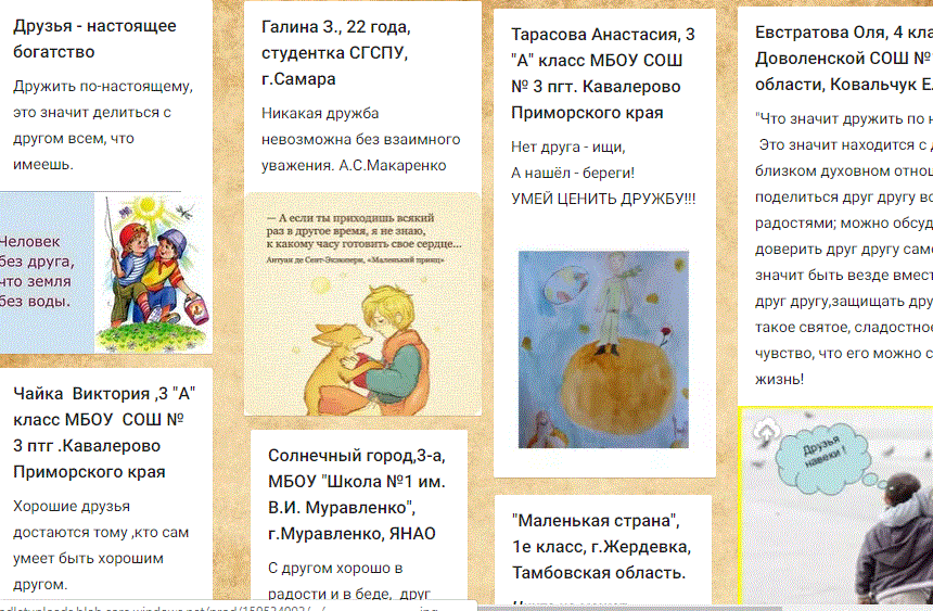 При дистанционном обучении на некоторых уроках дети дома рисуют рисунки и присылают их учителю. А что если собрать их все вместе? Для этого может помочь совместная презентация. Пример поделок к уроку технологии: https://docs.google.com/presentation/d/1KZxXPzv5ZjMQUEbhefg6XZiaSy9L3Jy9sO7IP4F8q38/edit#slide=id.g71cefe9bc9_0_125 Совместная презентация: возможности для коллективной работы при дистанционном обучении Можно воспользоваться онлайн доской, например, Padlet. На доске, если вы дали всем доступ, можно опубликовать документы, изображения, видео. Пример доски к проектам "Семейные реликвии", "Настоящее богатство". Можно использовать для домашнего задания по литературе, обсудить книгу: https://ru.padlet.com/pankova48/rday2e6k2xbq Работать в ней детям легко. Нужно просто нажать +. Появится листок. Подписать его, можно написать текст и загрузить рисунок. Инструкция. Ещё одна онлайн доска Linoit. Какое место в жизни человека занимает его малая родина? Успехов всем! Если есть вопро