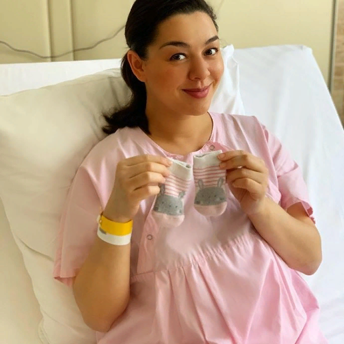 Новоиспеченная мама показывать малышку не стала, но сколько тепла мы видим на её лице.