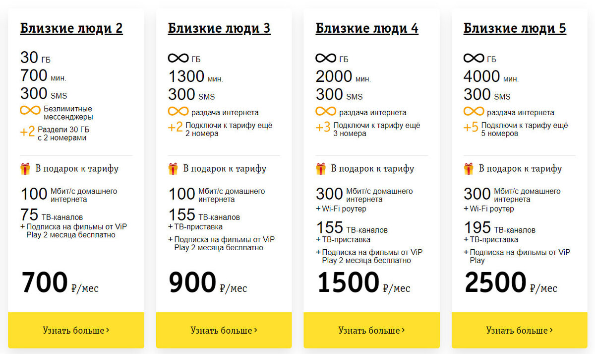 Прошлая линейка тарифов называлась «Семья». Видимо, такое название, по мнению маркетологов, чересчур ограничивало целевую аудиторию, так что теперь просто «Близкие люди». А этими близкими может быть кто угодно.
