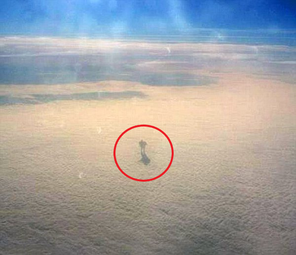 Странник Пассажир самолёта увидел в иллюминаторе и сфотографировал "человека", гуляющего по облакам... По облакам странник идущий...