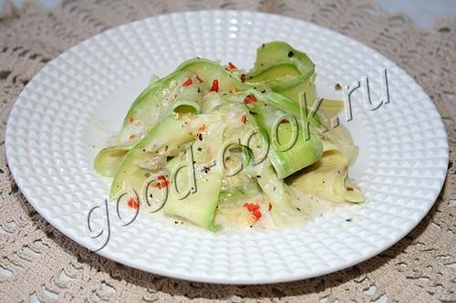 То, что кабачки нарезаны тоненькими ленточками, полностью меняет вкус.