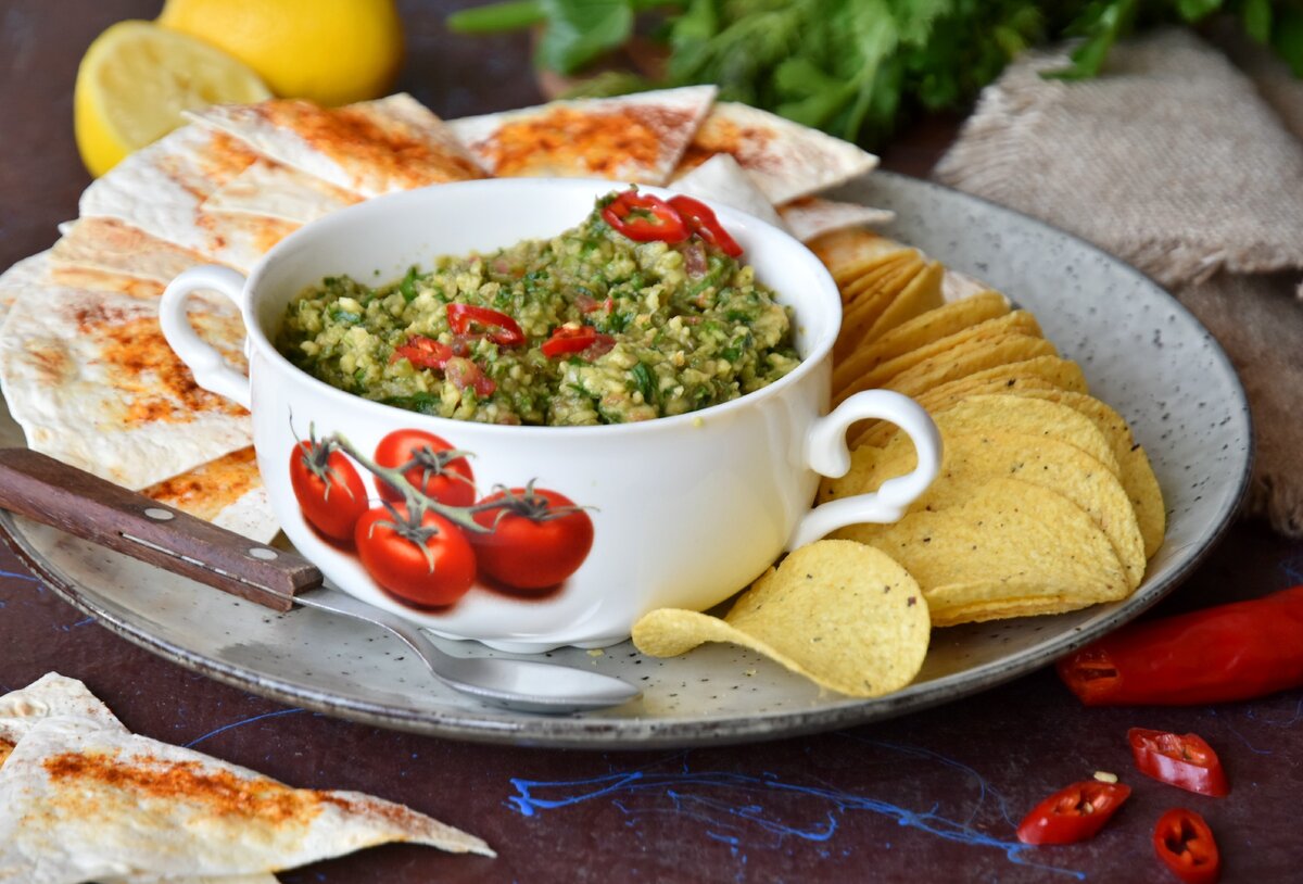 Ингредиенты: Способ приготовления: Шаг 1 Для гуакамоле используйте спелый плод авокадо. Вместо лайма можно взять лимон. Шаг 2 Измельчите любым способом. Разомните вилкой, порубите ножом, измельчите блендером. Шаг 3 Для того чтобы мякоть авокадо не потемнела, сбрызните ее соком одного лимона или лайма. Шаг 4 Мелко нарежьте помидор, предварительно удалив из него жидкую часть с семенами. Измельчите зеленый лук, кинзу, красный острый перец. Шаг 5 Добавьте соль, перец черный молотый, сухой чили и оливковое масло. Перемешайте гуакамоле. Соус украсит любое блюдо — от чипсов и начос до блюд из мяса и рыбы. Еще больше интересных рецептов вы найдете на сайте «Едим Дома».