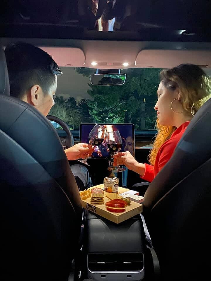 Владелец Tesla нашёл возможность пригласить жену поужинать и посмотреть кино несмотря на закрытие заведений из-за вспышки коронавируса. Шеф-повар из Вирджинии Улисс (Ulysses) решил сохранить традицию еженедельно приглашать жену в дорогие заведения. Улисс проявил творческий подход и понял, что вечер со своей второй половинкой не обязательно проводить в модном ресторане или дорогом кинотеатре. "Романтический" и "театральный" режим Tesla обеспечили всё, что было нужно. "Учитывая всю эту ситуацию с COVID-19, я хотел сделать что-то, что может уменьшить стресс и беспокойство, с которыми нам приходится иметь дело. Я хотел соблюсти все правила по социальному дистанцированию, но и сделать что-то романтическое, вдохновить людей на то, чтобы сделать любовь основой в эти трудные времена". Улисс с женой взяли с собой небольшую доску с жареным мясом, несколько видов сыров, сэндвичи и печенье Oreo для своего семилетнего сына. С режимом Romance Mode и бокалом вина, романтическая обстановка была обесп