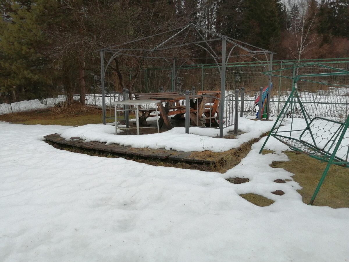 Этой мебели чуть больше 10 лет и в этот раз, третий по счёту, оставили без навеса. Заваливает снегом и когда приезжают гости, то расчищаем и накрываем стол ... посиделки начинаются ..))
