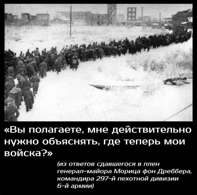 2 февраля 1943 года в Сталинграде капитулировала последняя группировка бывшей 6-й армии. 3 февраля в городе еще постреливали, но дело было сделано. Двадцать дивизий вермахта и две румынские дивизии, и без того доведенные до края выматывающими боями, голодом и холодом, перестали существовать, что называется, официально. Из 250 тысяч попавших в окружение в ноябре 1942 года, в плен было взято около 100 тысяч. Выжили из них тоже немногие: Сталинград и оказался тем самым ледяным адом из скандинавской мифологии «сверхчеловеческих» наследников «нордической расы». Всего же в боях за Сталинград Германия и ее союзники потеряли около 1,5 млн человек убитыми, ранеными и пленными. Чтобы понять, какие настроения царили в войсках противника после Сталинградской битвы, мы выбрали несколько цитат.