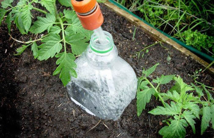 Как из обычной пластиковой бутылки сделать «умную» систему полива для огорода, грядки. Понадобятся пустые бутылки. Что понадобится: булавка или шило, плоскогубцы, нож, кусок плотной ткани (можно использовать кусок старого полотенца), пластиковая бутылка Описываемая конструкция позволяет получить в свое распоряжение приспособление, обеспечивающее непрерывный полив прикорневого пространства культурных растений на грядках. В жаркую погоду конструкция будет увлажнять почву, а во время дождя будет наоборот – забирать излишек влаги из земли. Для создания такого «умного» и чрезвычайно полезного инструмента не потребуется ни специальных знаний, ни узкоспециализированного инструмента. Делаем в бутылке отверстия. Итак, шаг первый – делаем в бутылке дренажные отверстия. Для этого можно просто расколоть булавку на огне, взяв ее предварительно в плоскогубцы, а затем аккуратно (пока не остыла) проткнуть ей бутылку в нескольких местах. Отверстия следует делать по всей площади бутылки.