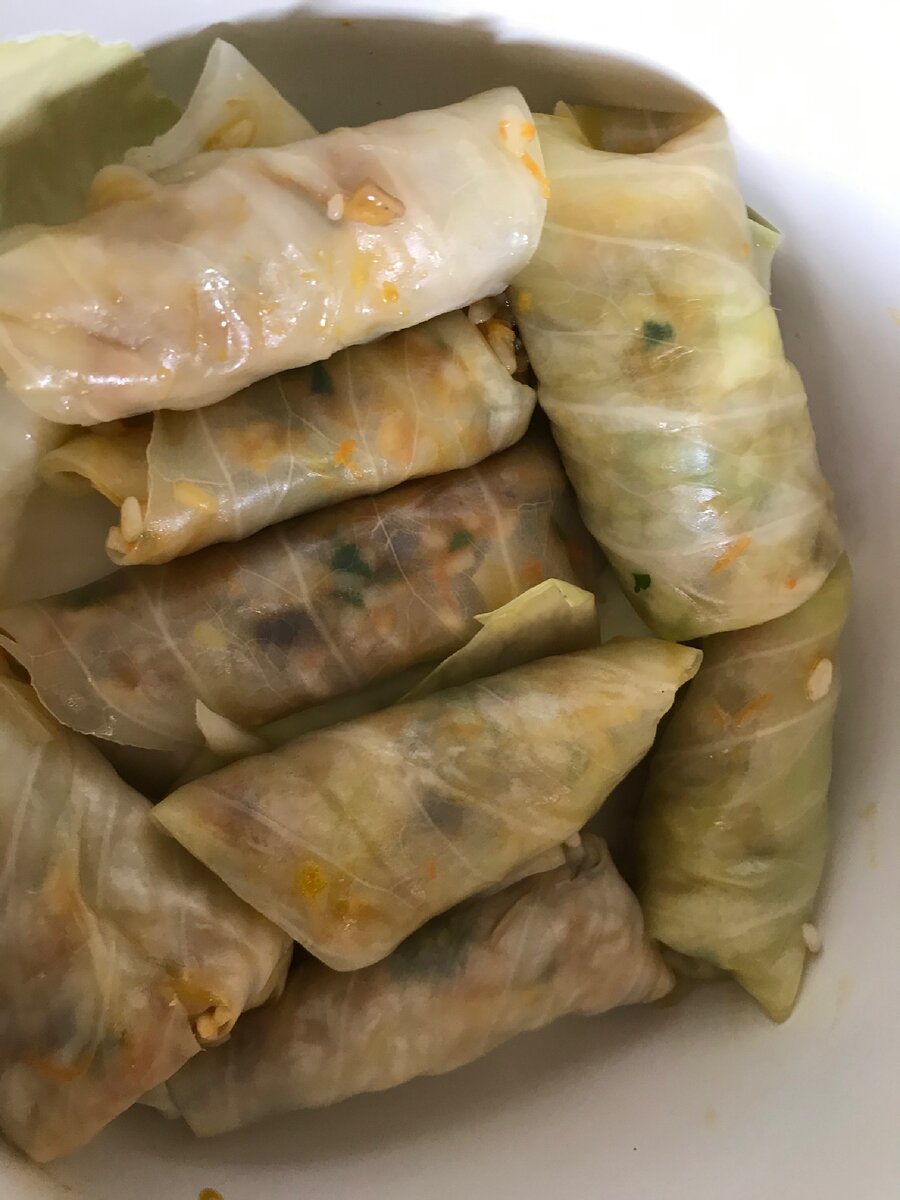 Хочу поделится рецептом замечательных Голубцев без мяса! Для них нам понадобится: 1. Бурый рис 2. Грибы шампиньоны 3. Лук 4. Морковка 5. Капуста белокочанная 6. Томатная паста 7. Соль, перец Для начала ставит отваривать рис до полу готовности. Пока рис варится, пасируем морковь с луком, режем грибы и тоже поджариваем, после того как рис на половину сварился смешиваем его с грибами, луком и морковью. Капусту разбираем на листья, ставим кастрюлю с водой, пусть закипит. Каждый листочек надо поочерёдно окунуть в кипяток и холодную воду, чтобы листки стали мягкие и из них можно было сворачивать голубцы. Когда наши листочки готовы, кладём в них нашу начинку и сворачиваем, плотно укладываем в казан или кастрюлю с толстым дном. Разбавляем тама в воде и заливаем наши голубцы, варить до полной готовности риса. Приятного аппетита!!!