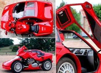 Snaefell - самый необычный колясочный мотоцикл Бесспорно байк, показанный на этом фото является самым оригинальным проектом по созданию железного коня с боковым прицепом. Этот концепт всецело излучает спортивный настрой. Причем свое необычное транспортное средство Франсуа Кноррек создавала целый десяток лет. Подсчитав время, затраченное на сборку этого моцика с коляской, конструктор увидел цыфру в десять тысяч часов. Помимо временных потерь, данный колясочный мотоцикл обошелся в кругленькую денежную сумму своему автору. На осуществление работ по созданию железного коня с именем "Snaefell" потребовалось 15 тысяч евро. Такая цифра набралась из-за применения дорогих деталей от брендов "Volkswagen" "Audi", "Citroen" и "Kawasaki". Вышеуказанный новый мотоцикл с коляской, купить который наверное не можно и существенно переплатив создателю байка, имеет в своем распоряжении довольно-таки сложную выхлопную систему. Она представлена тройкой труб. Необычные двери имеет боковой прицеп мото. Он