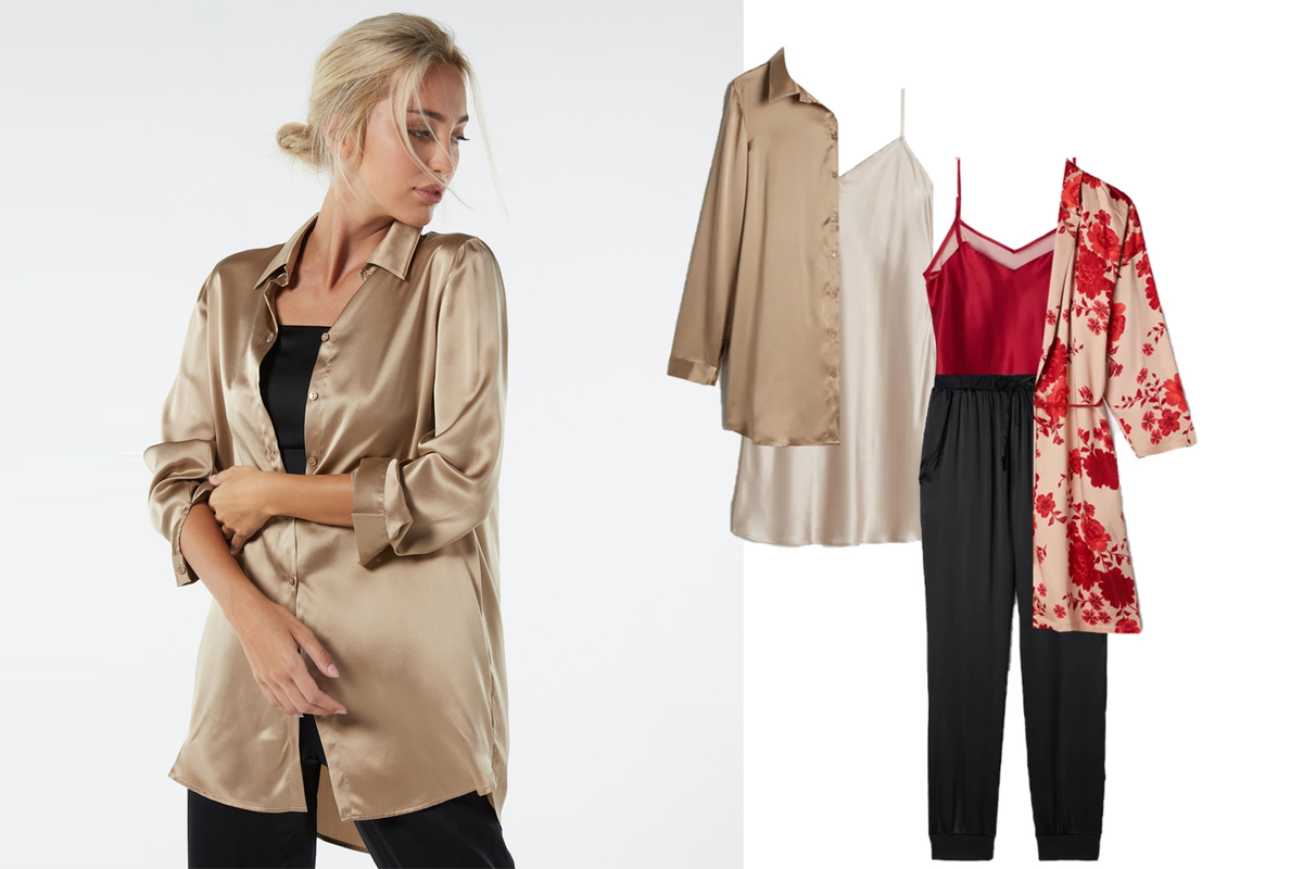 Несмотря на то, что некоторые не обделенные интеллектом граждане продолжают ходить по гостям, жарить шашлыки в парках и даже летать в Сочи, большинство умных людей сидит по домам. И сегодняшняя подборка – как раз по теме. Даже если домашний режим продлят на 3 недели, вам хватит образов, чтобы каждый день носить что-то разное) Итак, я собрала образы в Intimissimi, но ничто не мешает выбрать еще более бюджетные варианты. К тому же, большинство вещей наверняка уже есть у вас в гардеробе. Ну, а если вам что-то понравится – ссылки, как всегда, кликабельны) Итак, из перечисленных семи вещей можно составить как минимум 21 образ! Огромный плюс рубашки заключается в том, что ее можно использовать и как топ, и как накидку, особенно если она достаточно длинная. Ну, а в натуральном шелке будет комфортно при любой температуре. Еще одна универсальная вещь – мини-сорочка из шелка. Ее также можно использовать как топ в сочетании с объемными брюками или шортами. Бежевый и красный – замечательное сочет