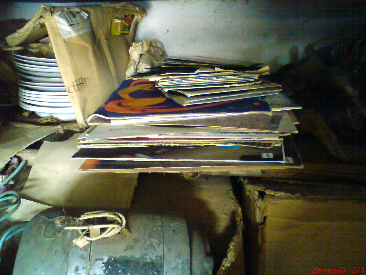 Чего только не хранится в каждом из этих (фото ниже) частных гаражей построенных ещё в конце 1970-х и с тех пор копящие всякий мусор на своих полках. Я лично сам лет десять назад впихнул на одну из полок коробку со своими любимыми аудиокассетами. :) Сегодня я по личному заданию жены искал на полках гаража очень нужные семье тарелки с зелёной каёмочкой и нарвался на вот этот "древний" винил. Для тех кто не знает суть этого слова поясняю, винил это вид пластика из которого когда то человечество делала аудио носители по подобию CD дисков, только выжигали звуковые дороги не лазерным лучом, а раскалённой иглой. Репертуар как видите самый, что не есть крутой и популярный для женщин чья молодость выпала на 1960-1980 годы. К стате наша старушка и посей день живёт, но музыку слушает из работающей походу во всём городе только у неё одной в квартире радиоточке. Цены на музыку были доступные, но при минимальной заработанной плате в 100 рублей, много не купишь. Хотя как говорила старушка денег