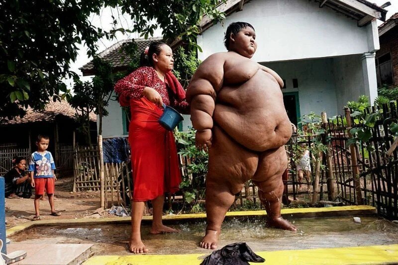 В 2016 году история Арьи Перманы из Индонезии облетела весь мир - этот мальчик был признан Самым Толстым Ребенком в мире. Согласно записям того времени, вес Арьи составлял 192 кг 14-летний индонезиец Арья Пермана считался самым толстым мальчиком в мире - в 10-летнем возрасте вес мелкого зашкаливал за 190 кг. Пацан не ходил в школу и коротал дни, лежа на диване и играя на телефоне или охлаждая свои телеса в маленьком бассейне. И вот благодаря всемирному освещению этой проблемы удалось сдвинуть эту ситуацию с мертвой точки. Арье сделали операцию по уменьшению желудка. Если раньше мальчик ел по пять раз на день - и каждая порция выглядела как обильный обед для взрослого человека, сейчас, по признанию самого Арьи, уже шесть ложек еды могут сделать его полностью сытым. "Мне не разрешают есть сладости и сладкие напитки, - рассказывает Арья. - Предлагают все больше фрукты, а еще мне надо регулярно заниматься физкультурой." Если в самом начале для Арьи похудение было сложным, то теперь, ви