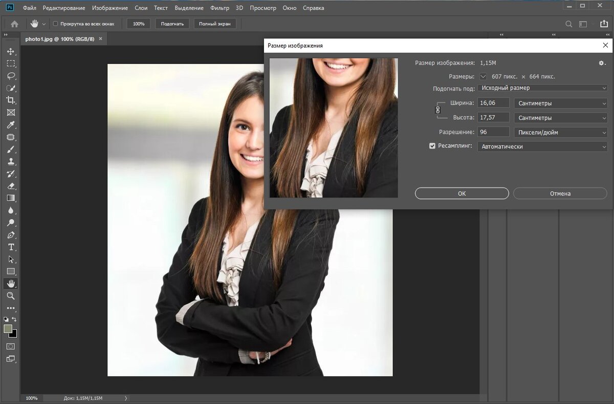 Разрешение web-изображения не должно быть большим, если мы не хотим размещать какую-либо значимую иллюстрацию, поэтому 96 пикселей на дюйм - это как раз стандартная величина.