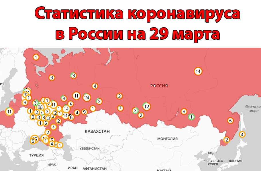 На сегодняшний день (29 марта) в статистике коронавируса по России насчитывается 1552 зараженных, 74 выздоровевших и 9 умерших. В период с 28 на утро 29 марта были выявлены новые случаи заболевания коронавирусной инфекцией (ncov) SARS-COV-2 в следующих регионах Российской Федерации: