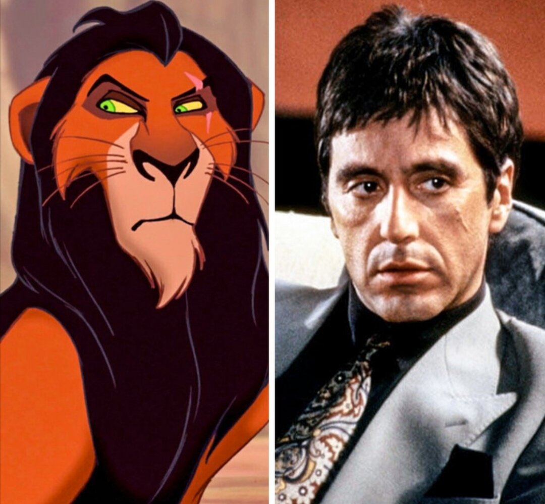 - Вряд ли вы обращали внимание, но шрам на лице Шрама — это практически точная копия рубца на лице Тони Монтаны в исполнении Аль Пачино из фильма «Человек со шрамом».