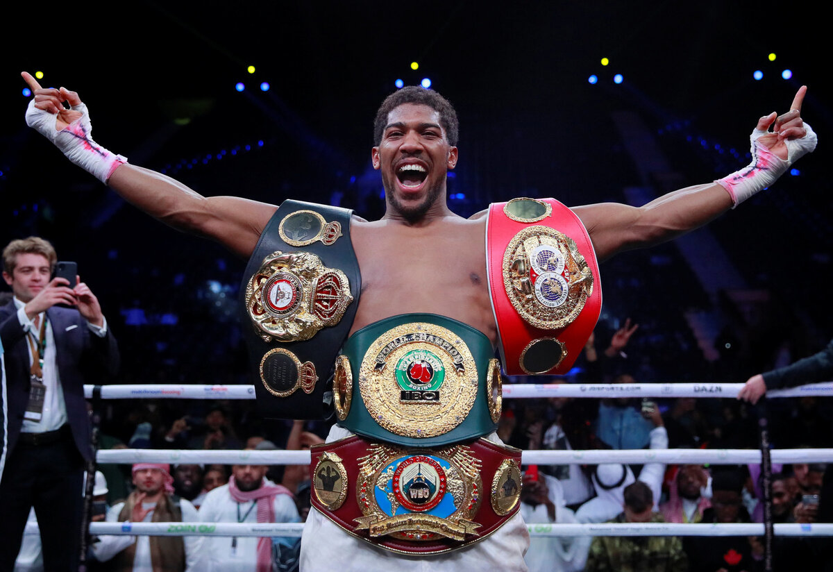Стакан обезжиренного йогурта с фруктами Смесь орехов (фундук, грецкий, арахис, кешью) смешанная с ложкой мёда Энтони очень любит крепкий кофе, но позволяет себе пить этот напиток не более 2 раз в сутки (без сахара). После тренировки он выпивает белково-углеводный коктейль и принимает душ. Третий (лёгкий) приём пищи проходит в районе 15:00: Сухой тост с варёной индейкой (или курицей) Немного фруктов на выбор и чашка кофе В 17:00 вторая тренировка. После неё боксёр выпивает белково-углеводный коктейль и ужинает в районе 19:00: Морской окунь на пару или запечённая говяжья вырезка Сладкий картофель или бурый рис Свежевыжатый апельсиновый сок Перед сном Джошуа выпивает казеиновый протеин и стакан кефира. В рационе Энтони много углеводов - более 500 грамм. Достаточно белка - 220-250 грамм. И мало жира, который он получает из орехов - около 50 грамм. Большое количество углеводов обусловлено высокой физической активностью. Интенсивные тренировки и большая масса тела требуют как быстрые (мёд, фрукты) , так и медленные (макароны, сладкий картофель, бурый рис) углеводы. Боксёр принимает комплексы витаминов (группы Е и C) для укрепления иммунитета и поддержания здоровья. В свободное от тренировок время Энтони любит смотреть бокс и играть с друзьями в PlayStation. Тренировки: За тренировочный процесс Джошуа отвечает его давний наставник - Роберт Маккрэкен. Стандартная боксёрская тренировка (которая проходит в первой половине дня - 12:00) включает в себя: Разминку на скакалке - 10 минут Бой с тенью - не более 5 минут Тренировку на тяжёлом мешке без учёта времени - около 30 минут Скоростная груша "капля" - 7-10 минут Лапы - 4-5 раундов. Если есть запланированные спарринги, то сокращается время работы на тяжёлом мешке и других снарядах. Энтони уделяет мало времени бою с тенью (исключение составляют элементы боя с тенью на песке). Роберт Маккрэкен утверждает, что чрезмерное увлечение этим упражнением вредит суставам бойца. Боксёрская часть завершается закачкой шеи в разных положениях с помощью подвески с грузом. Иногда Джошуа заменяет работу на "капле" ударами по настенной подушке. Отрабатывает коронный правый апперкот (100 раз). Уделяя особое внимание технике удара в медленном темпе. Во второй половине дня наступает время силовой тренировки. Энтони выглядит как культурист, при этом он способен боксировать 12 раундов имея такую внушительную мускулатуру. Ещё со времён любительской карьеры британец уделял много времени силовым упражнениям. Он может свободно выполнить сложнейшие элементы современного кроссфита: флажок, выход на две руки, мостик из стойки, передний вис на перекладине.