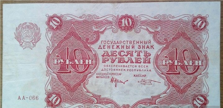 Введены в ходе деноминации, проводившейся с декабря 1921 по апрель 1922 (новый рубль обменивался на 10 тысяч старых). Использовались в качестве официального средства платежа до 1 октября 1923 года, когда им на смену пришли купюры нового образца. Рисунок красного цвета, имеет горизонтальную ориентацию. Печатались Первой Московской печатной фабрикой Гознака.