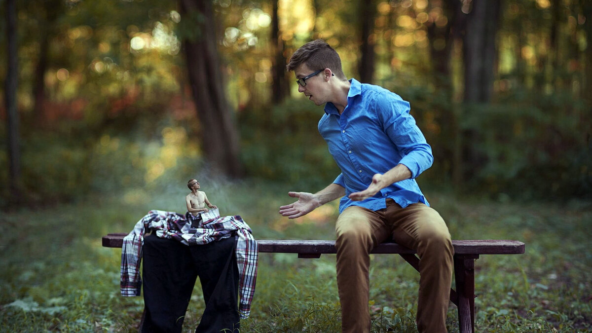 Сидит эта девушка на лавочке, спиной прислонившись к объявлению. А рядом с ней неожиданно возникает парень в очка