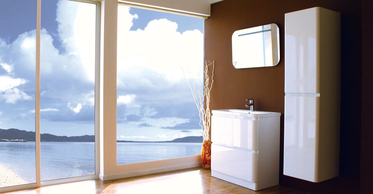 Мебель из МДФ стоит на порядок дороже, но зато обладает всеми необходимыми качествами для долгой и надежной службы в «сложных климатических» условиях ванной комнаты. Этот материал влагостойкий, гигиеничный и при этом пластичный ( в отличие от ДСП). А это позволяет производить изделия нестандартного дизайна (например, с закругленными фасадами).