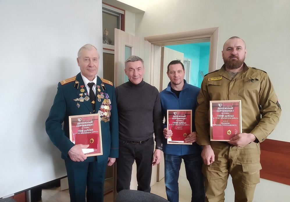 Компания «Цербер» гордиться своими сотрудниками. Особое внимание сотрудникам, которые отработали более 5-и, 10- и , 15-ти лет и 20-ти лет на предприятии. За 15 лет в частной охране знаки отличия и денежные сертификаты были вручены: - Новикову Александру Сергеевичу, охраннику-водителю ГНР; - Шумакову Леониду Александровичу. охраннику-водителю ГНР; - Воробьеву Валентину Валентиновичу, охраннику Отдела физической охраны. От всей души поздравляем сотрудников компании «Цербер»! Возврат к списку