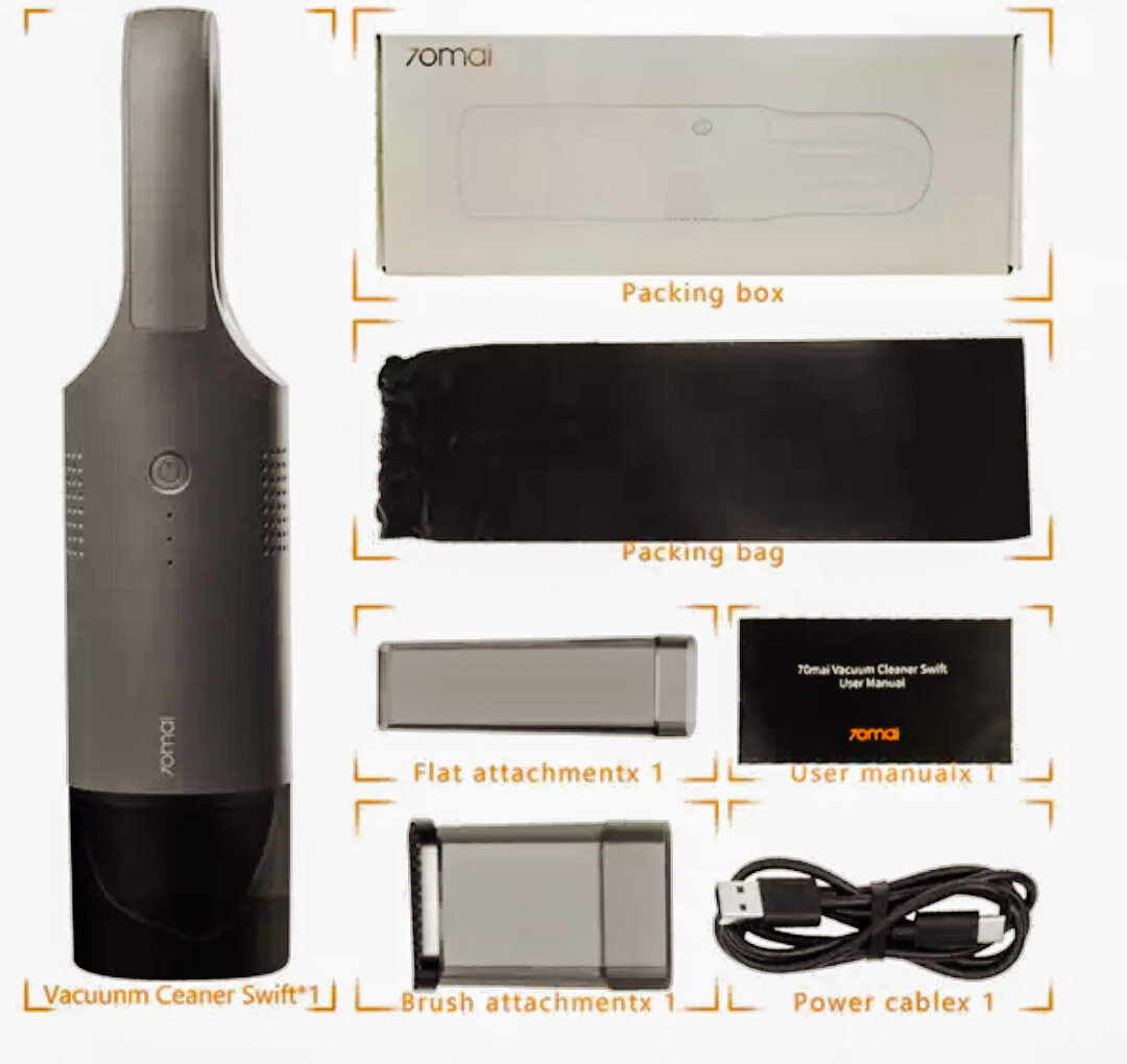 Друзья, всем привет, сегодня у меня на обзоре автомобильный пылесос. Заказывал его на сайте AliExpress, но пришёл он не из Китая, а из Москвы примерно за 10 дней. Пылесос выполнен из качественного матового пластика удобно держать в руке. На корпусе есть кнопка вкл/выкл, три индикатора, которые будут сигнализировать об уровне заряда, с другой стороны находится USB разъем. Ёмкость аккумулятора 4000 mAh, полная зарядка длиться 3 часа. Полностью зараженный пылесос работает примерно 25 минут, что довольно неплохо. Длина пылесоса 30см, диаметр 7см, вес 700 грамм, мощность пылесоса 80 Вт, объем резервуара для мусора 100мл. В комплекте провод (не очень большой) для зарядки, насадка в виде щётки и длинная насадка для труднодоступных мест, инструкция на английском и китайском, мешочек для хранения пылесоса. Я протестировал данный пылесос. Он отлично справляется с мелким мусором, также кроме уборки в машине, его можно использовать в домашних условиях. Например пропылесосить клавиатуру, кресло и