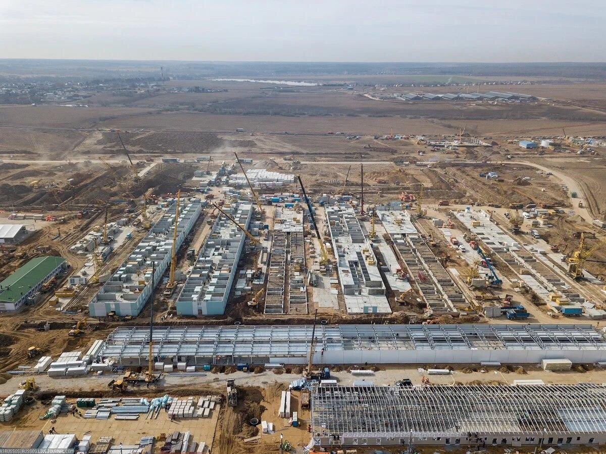 В Новой Москве на Калужском шоссе вовсю продолжается строительство инфекционной больницы для пациентов с коронавирусом