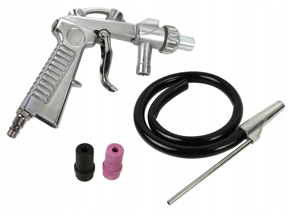 Нужно избавиться от ржавчины или слоя краски на металлической поверхности? Пескоструйка – один из лучших способов. Нужен компрессор и пистолет, об особенностях которого я Вам и рассказываю в этой статье. Зачистка металлических поверхностей от краски и ржавчины вручную — это довольно трудоемкий процесс. Упростить себе жизнь можно, если воспользоваться пескоструйным пистолетом, который с помощью абразива быстро и эффективно уберет ржавчину с любой поверхности. Также им можно создавать красивые рисунки на стекле (например, при создании дизайна витражей). Конечно, для него потребуется производительный компрессор, поэтому рекомендуем покупать пистолет в связке с этим устройством. Какой выбрать пескоструйный пистолет для компрессора, чтобы он был надежным и долговечным? Конструкция и принцип работы пескоструйного пистолета Конструктивно пистолет для пескоструйки состоит из следующих элементов: 1. Рукоятка. 2. Курок. 3. Сопло распыления воздушно-песчаной смеси. 4. Втулка для подсоединен