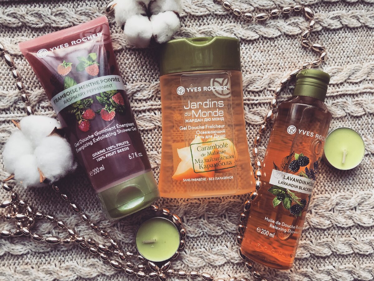 Купаться я люблю, а в условиях карантина это делать хочется чаще! И приятнее делать со вкусными ароматами и разными текстурами средств! И очередная подборка от Yves Rocher Гель-гоммаж для душа «Малина и мята» - мягкая туба, с колпачком-дозатором, гелевой консистенции, со скрабирующими частичками и запахали малины - это и не скраб, и не гель для душа, а нечто непонятное и мне не понравилось - запах очень слабо заметный и не особо приятный( - так помазаться и смыть Объём 200 мл Освежающий гель для душа «Малайзийская карамбола» - пластиковая бутылочка, с колпачком-дозатором, гелевой консистенции с очень ярким и приятным ароматом - гель хорошо пенится и очищает кожу - расход средства средний - не сушит кожу Объём 200 мл Масло для душа «Лаванда и Ежевика» - пластиковая бутылочка, с колпачком-дозатором, масляной консистенцией и вкусным ароматом ежевики - масло при взаимодействии с водой пенится и превращается в крем - очень нежное и деликатное очищение, прям влюбилась в это средство - и