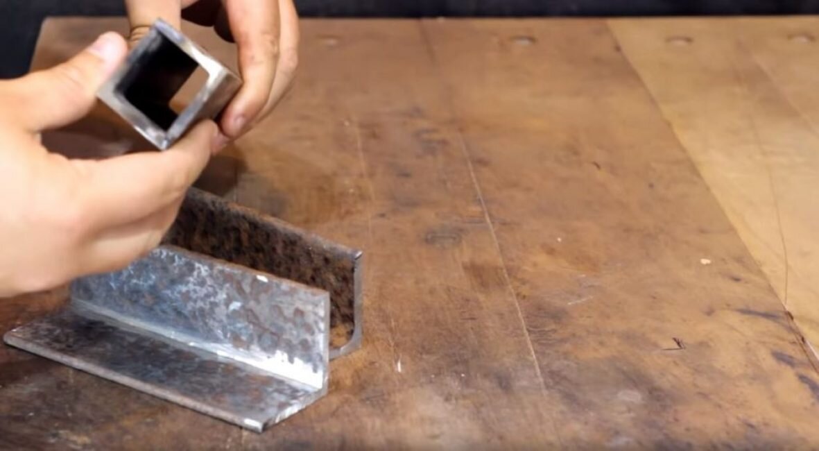 Многие слесарные работы без тисков выполнить сложно, а иногда и невозможно. В магазине слесарные тиски стоят довольно дорого. В этой статье мы постараемся помочь вам сделать тиски из подручных материалов. Материалы для изготовления Для того, чтобы сделать тиски, вам понадобятся: Шаг 1. Делаем направляющую 1 Из квадратной трубы необходимого сечения отрезаем кусок нужной длины. Если подходящей трубы нет под рукой, то ее можно сварить из двух уголков. Источник: https://youtu.be/8eb0D6zA5K4 2 От уголка, ширина внутренней стороны которого чуть больше ширины наружной стороны квадратного сечения трубы, отрезаем два куска. 3 Болгаркой зачищаем внутренние стороны одной заготовки, закрепляя ее струбциной. А от второго уголка отрезаем полоску. Источник: https://youtu.be/8eb0D6zA5K4 4 Болгаркой зачищаем отрезанную полоску. 5 Из железного листа, толщиной не менее 5 мм, вырезаем квадрат для основания тисков. 6 На уголок кладем квадратную трубу. На трубу кладем сложенную бумагу, а сверху загот