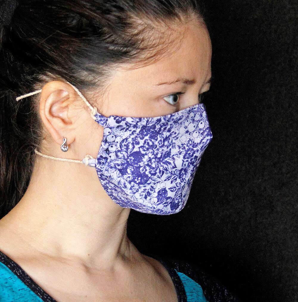 Долевая нить должна быть ПОПЕРЁК маски, чтоб при разговоре маска не утягивалась за подбородком и не спадала. Если у