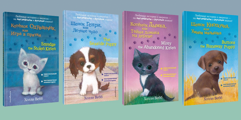 Вы сидите дома, пересмотрели все сериалы, сроднились с телевизором и трижды передвинули мебель в квартире? Направьте энергию в мирное русло! Займитесь тем, чем давно собирались заняться, когда будет время. Да-да, английским. Пособия по грамматике помогут вам привести знания в систему, упражнения – тут же применить их на практике, а хорошие книги – провести время с удовольствием и обогатить свою речь интересными словами и выражениями. Самое время заняться тем, на что всегда нет времени… Холли Вебб - суперпопулярная детская писательница. Ее трогательные истории о животных учат детей состраданию, ответственности, смелости. Теперь они помогут еще и в освоении английского - ведь это КНИГИ-БИЛИНГВЫ! В них: Чудесные истории о животных понравятся маленьким читателям и на языке оригинала и помогут освоить современный британский английский. Родителям можно не сомневаться: чтение на английском языке будет увлекательным и полезным! Ирина Алексеевна Шишкова – один из главных авторитетов для тех