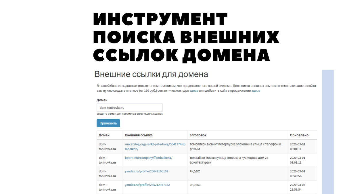Первый такой инструмент - это анализатор внешних ссылок для домена.