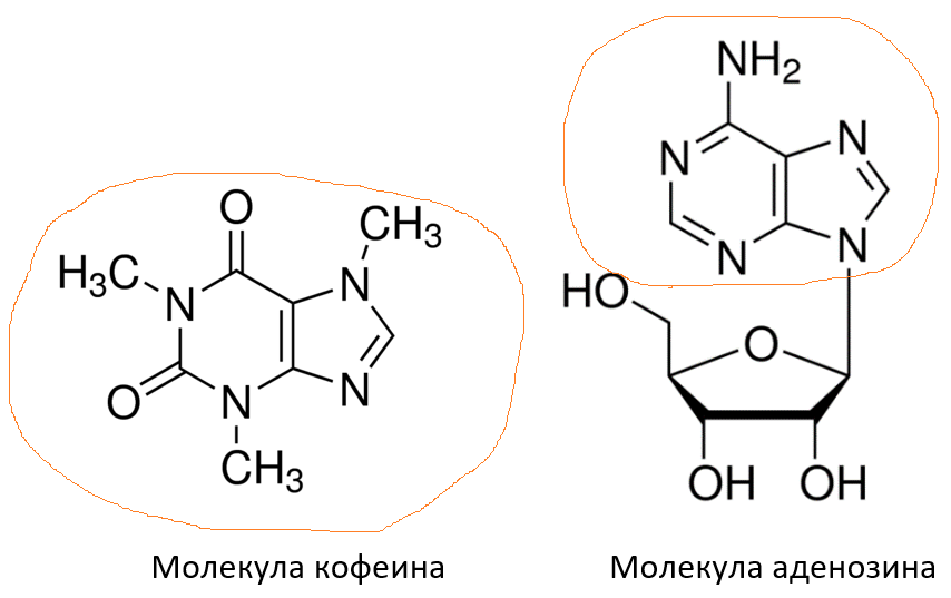 Горит очередной дедлайн (про дедлайн почитайте в другой моей публикации), вы устали... Что делать? Кофе... Действие кофе связано с наличием в нем кофеина. А как же действует кофеин на организм? Молекула кофеина очень сильно похожа на аденозин. И как раз аденозин и вызывает у нас сонливость. А откуда он берется ? После того, как мы поели, питательные вещества расщепляются и частично выделяется в виде тепла. А из другой части формируется запас энергии в виде аденозинтрифосфата (АТФ). А при расщеплении АТФ появляется аденозин. То есть чем больше клетки трудятся, тем больше его накапливается и клетки получают сигнал о том, что пора бы «отдохнуть». Аденозин связывается с аденозиновыми рецепторами и все, мы чувствуем, что выключаемся. И идем заваривать кофе. И вместо аденозина кофеин (он так схож, что рецепторы принимают его за «своего») связывается с аденозиновыми рецепторами и блокирует их. Эти рецепторы есть и в мозге, и в сердце, и в почках. Поэтому, выпив кофе, мы не только легче