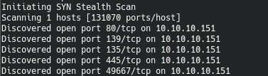 masscan -e tun0 -p1-65535,U:1-65535 10.10.10.151 --rate=1000