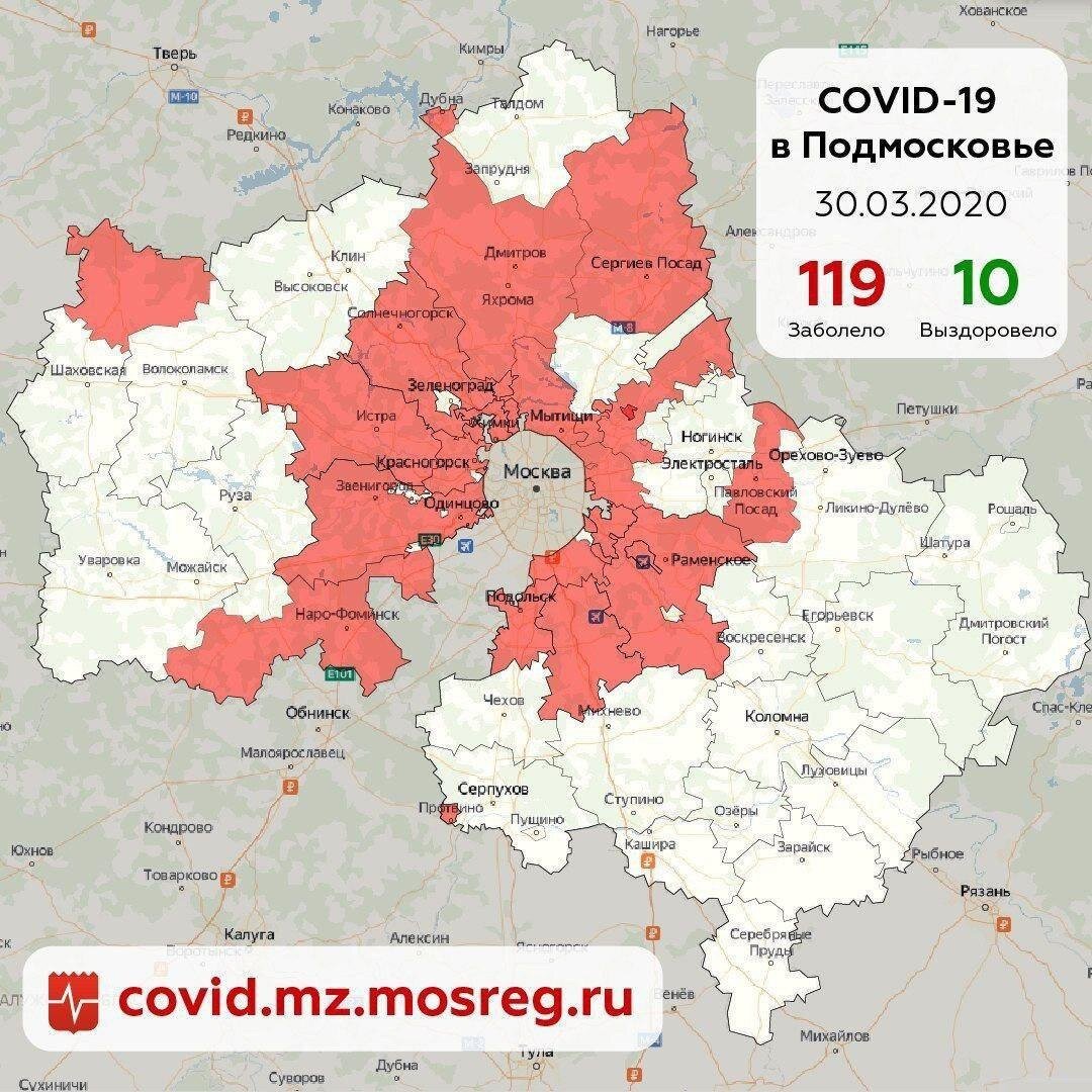 🇷🇺В каких городах территориально находятся заболевшие COVID-19 в Московской области. Балашиха - 4 Дмитров -3 Долгопрудный - 4 Домодедово - 2 Дубна - 1 Жуковский - 3 Ивантеевка - 1 Истра - 6 Королев - 2 Котельники - 1 Красногорск - 8 Ленинский - 8 Лобня - 4 Лотошино - 1 Лыткарино - 1 Люберцы - 4 Мытищи - 6 Наро-Форминск - 1 Одинцово - 16 Павловский посад - 1 Подольск - 2 Протвино - 2 Раменское - 10 Реутов - 5 Сергиев Посад - 2 Солнечногорск - 3 Фрязино - 2 Химки - 5 Щелково - 1