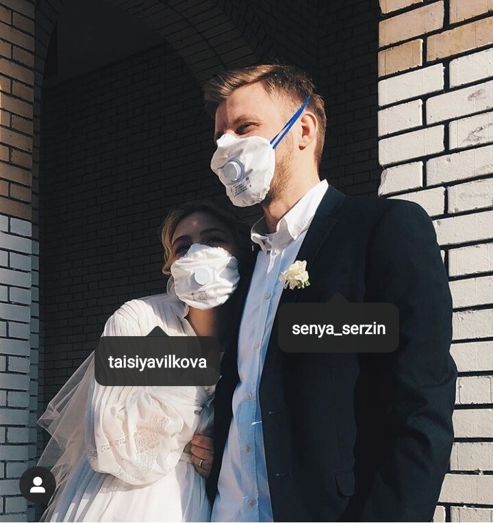 Платье, туфли, фата, перчатки - все это мы привыкли видеть на невестах. Но "благодаря" новому вирусу молодым приходятся дополнять свои свадебные образы медицинскими масками. 27 марта 2020 года, в день театра, актриса, знаменитая по роли Васи в сериале "ДеФФченки" вышла замуж. Избранником Таисии Вилковой стал 32-летний режиссёр театра Семён Серзин. В связи с распространением в нашей стране коронавируса во многих регионах страны ЗАГСы перешли на особый режим регистрации браков: молодожёны расписываются без гостей и традиционных поцелуев. Карантин был прерван на пару часов, но теперь все на своих местах - медовая самоизоляция. Мы волевым решением отказались от какого-либо празднования, даже маленького - волнительно было в первую очередь за родителей и других взрослых родственников. Берегите себя и близких♥️ Для торжества невеста выбрала нежное закрытое платье с длинными рукавами и дополнила его длинной фатой. В этом образе Таисия очень похожа на девушку из 19 века. О романе Таисии и