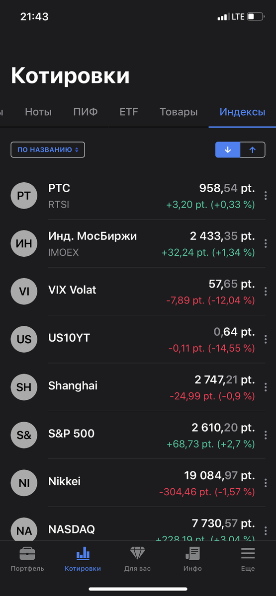 Сегодня, по распоряжению Президента, устроил себе выходной и даже в Приложение не заходил и не смотрел за Акциями. И вот вечером, всё-таки добравшись до телефона, с удивлением обнаружил что рынки росли не смотря на продолжающуюся пандемию COVID-19 и изоляцию многих стран. Спасибо США? NASDAQ - 7730 SP500 - 2610 Нефть уже 22 pt. Как так вышло? Я конечно только рад, но всё же... Это смена тренда или очередная коррекция? Пожалуй пора покупать Coca-Cola, Walmart, Macdonald’s, AbbVie. Думаю на этой неделе буду входить тысячи на две евро. Ещё две оставлю до дальнейшего развития событий.