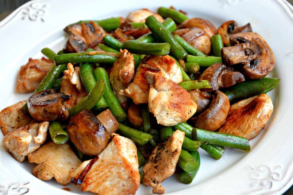 Просто, быстро, вкусно. Курица со стручковой фасолью и грибами.