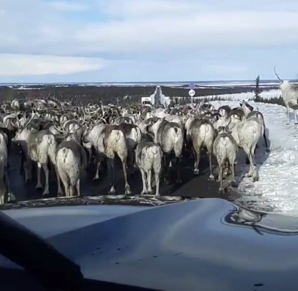 Иван Сакал попал в пробку, которую создали многочисленные олени. Видео необычного затора на дороге глава Приуральского района опубликовал 30 марта в своем аккаунте в Instagram. «Признаки ямальской весны. Олени начали движение на север», - пишет в соцсети Иван Сакал. Глава Приуральского района стал свидетелем перекочевки животных по пути в Аксарку, куда он ехал из Харпа. Смотрите видео по теме: «Глава Приуральского района попал в пробку из оленей» В видеоролике видно, что многочисленное стадо северных оленей не спеша идет вдоль трассы. Масса животных мешает как встречному, так и попутному движению автомобилей. Машина главы Приуральского района на небольшой скорости стала ехать рядом с оленями. Их вовсе не смущал идущий рядом транспорт, они без спешки продолжали свой путь. Читайте также по теме: Стадо оленей «сопроводило» машину в тундре ЯНАО. Видео Читайте наши новости первыми - добавьте «МК Ямал» в любимые источники.