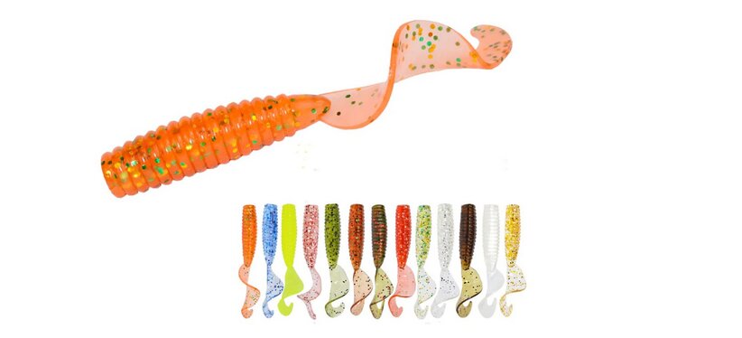 1. Твистеры Afishlure 45 мм вес 1.2 гр. Для микроджига и ловли окуней ультралайтом. Вообще, эти твистеры я покупаю или докупаю перед каждым сезоном открытой воды на протяжении трёх лет. Это отличная приманка для окуня и некрупной щуки на небольших озёрах. В моём случае, лучше всего работали цвета красный, синий и кислотно-жёлтый. Сейчас докупил приманки белого и розового цвета, а синий, желтый и красный остались с прошлого сезона. Кстати, как они ловят рыбу можно увидеть наглядно в ролике здесь. Как раз получилась хорошая рыбалка.